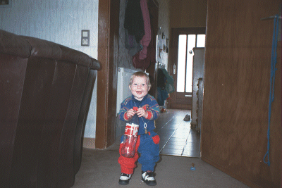 Unsere Küche liegt im Erdgeschoß, also bin ich die Treppe halb hinuntergegangen und hab mich erst mal auf eine der untersten Stufen hingesetzt und Oma und Opa beobachtet, wie sie beide Karten gespielt haben. Nach einer weile hat der Opa mich bemerkt und gesagt: "So, Benni, jetzt ist es aber doch Zeit fürs Bettchen." Sie hatten mich zwar schon ´ne ganze Weile bemerkt, doch mittlerweile war es schon halb neun, also wirklich Zeit fürs Bett! Mir gefiel der Gedanke jedoch gar nicht. So tat ich erst mal so, als wenn ich nichts gehört hätte. Da wurde mein Opa etwas energischer. Er sagte: "Benni, jetzt aber ab ins Bett!" Tja, nichts einfacher als das, denn meine Antwort lautete promt: "Du hast mir hier gar nichts zu sagen, denn das ist unsere Wohnung!"