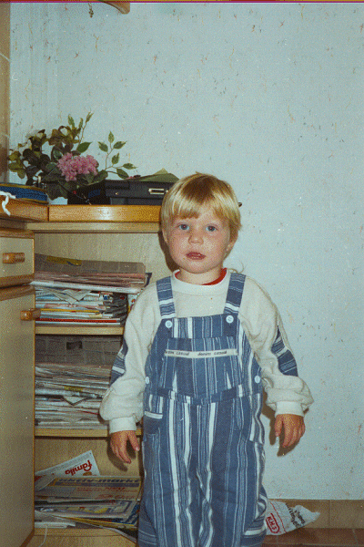 Dann habe ich da noch so ein Hobby. Das ist nämlich mein Computer. Es ist zwar nur ein langsamer, aber besser als gar keiner. Ich habe einen Cyrix 120 mit immerhin 16 MB Arbeitsspeicher. Aber davon verstehen meine Eltern mehr als ich (noch!!!!!!). Ich kann zwar noch nicht lesen, doch Programme kann ich mir schon selbst installieren. Meine Omas sagen immer: "Tja, die Kids von heute, es dauert gar nicht mehr lange, dann kommen sie auf die Welt und können schon lesen." Das sind eben Omas! Aber dafür hab ich sie ganz doll lieb. Ist doch schön, wenn man noch Omas und Opas hat.